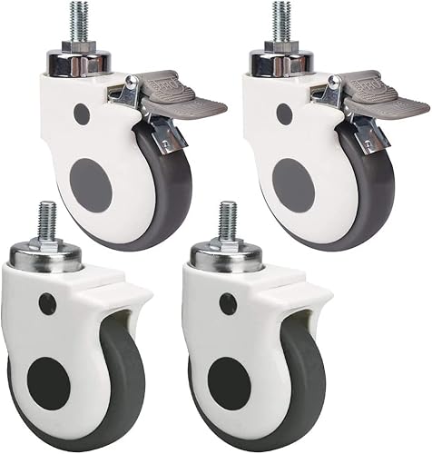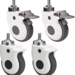 4個セットの家具キャスター。サイズ75mm/100mm、M8/M12スレッド、360°回転可能。ブレーキ付きで耐荷重360kg。工業用や移動用に最適なサイレントラバースイベルキャスター。