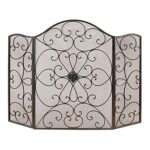 大型アイアン暖炉スクリーンガードは、2つのヒンジ付きでクラシックなスクロールデザイン。ベビープルーフメッシュカーテンでリビングルームに最適です。