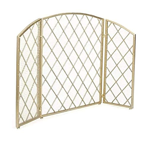 美しいゴールドシェードの暖炉スクリーン、ダイヤモンドシェイプデザイン。折りたたみ式サイドパネル付き、サイズ52×31.9で安全性とスタイルを兼ね備えたアイテムです。