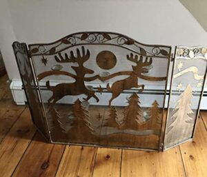 暖炉スクリーンガード、暖炉スクリーン、素朴な金属製の重厚な暖炉スクリーン、トナカイとクリスマスツリーのデザイン、9本のキャンドル付き暖炉スクリーン、フラット暖炉