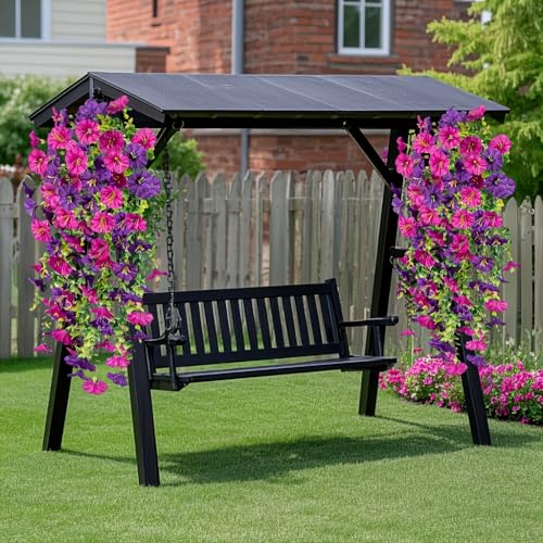 屋外用人工朝顔ハンギングフラワー2個。ガーデンやパティオ、バルコニーに最適。バレンタインデーやクリスマス、イースター、感謝祭、ハロウィンなど季節の装飾にも最適です。