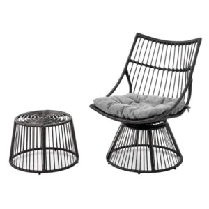 PEラタン製 ガーデンファニチャーセット 2点セット ベージュ×グレー 手編みデザイン 厚手クッション付 高さ調整可能 屋外用家具 簡単組み立て テラスチェア リビングチェア ベランダテーブル