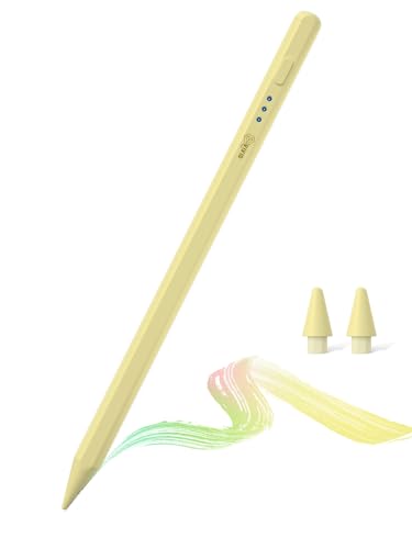 VIVID TECH アップルペンシル互換のタッチペン。高感度・低遅延、傾き感知、電量表示、誤作動防止機能を搭載。2018〜2025年のiPadに対応し、軽量で耐久性あり。滑らかな書き心地。カラー:イエロー。