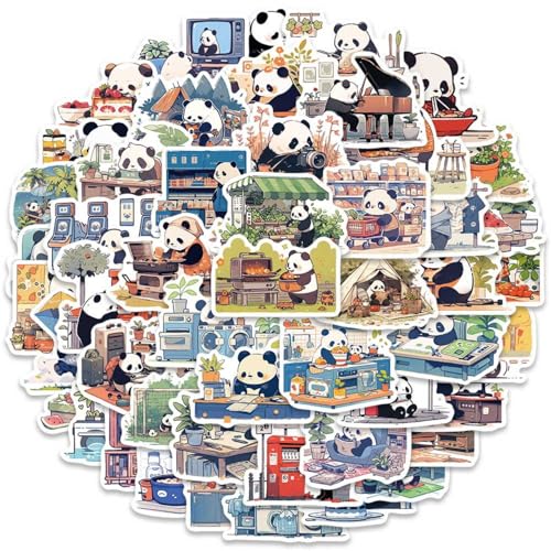 パンダ漫画装飾ステッカー50枚セット。防水でマット仕上げ、ノートパソコンや携帯電話、スーツケースに最適!かわいいDIY装飾や落書きデカールにどうぞ。