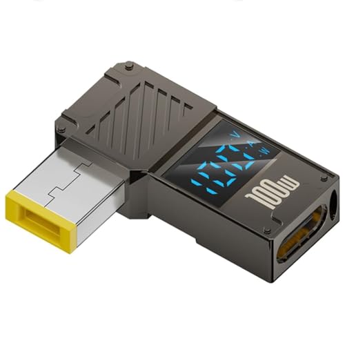 ノートパソコンPD充電対応の変換アダプター。L字型デザイン、LED表示付き。LENOVO/NEC/ThinkPad X1 Carbon Legion対応。11.0×4.5mm DCプラグ、100W出力でストラップホール付き。