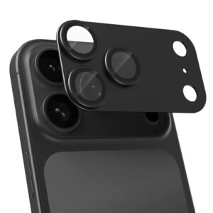Hohotoon 対応 iPhone17 Pro max用 カメラ保護フィルム アイフォン17 プロマックス カメラフィルム & いphone17Pro max レンズカバー、宇宙航空材料 アルミ合金+9H強化ガラス、耐衝撃 、極薄 一体型 、 AR高透過率、 露出オーバー防止、粘着性強い、簡単貼り付け 、スマートフォンカメラガード(ブラック)