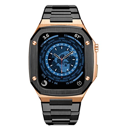 diosbrasのアップルウォッチ用ケースは、40mmサイズに対応し、ブラック&ローズゴールドのステンレス素材を使用。Series 9/SE/8/7/6/5/4/3/2/1に適合。バンドとカバーが一体型です。