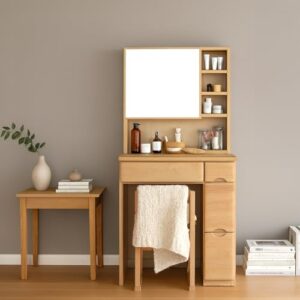 [届いてすぐに使える] 完成品 ドレッサー 幅 60 cm 北欧 木製 木 天然木 コンパクト 北欧ドレッサー コンセント付き 収納 収納力 スリム スツール付き 椅子付き 鏡台 シンプル ナチュラル 組み立て不要 無垢 小さい 一人暮らし 化粧台 椅子付き