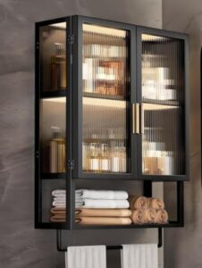 TIMDU 壁掛け式洗面所キャビネット|タオルバー付き、 空間を有効活用 、大容量収納 化粧品・洗面用品まで収納可能 取り付けが簡単 バスルーム・キッチン・ランドリールームにも使える (ブラック,50mm幅)