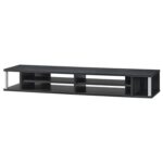 朝日木材加工のテレビ台、ちょい足しラックダブルは、55型対応で幅125cm、高さ18cmのブラック完成品です。シンプルでスタイリッシュなデザインが魅力です。