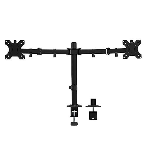 アーキスのデュアルモニターアームAS-MABH05Dは、2画面を水平に可動でき、高さ調節も可能。デスク設置用で、スチール製のブラック仕上げが特徴です。