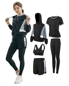 [DawnRain] スポーツウェア レディース ヨガウェア トレーニングウェア ランニング 上下 5点セット ジム フィットネス