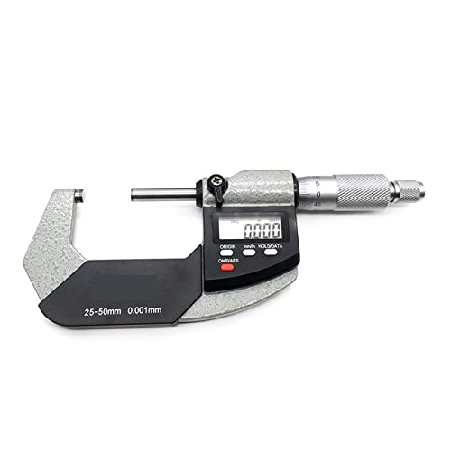 デジタルマイクロメーター、測定範囲25~50mm、精度0.001mm。小型デザインで、電子ディスプレイによる簡単な数値読み取りが特徴。