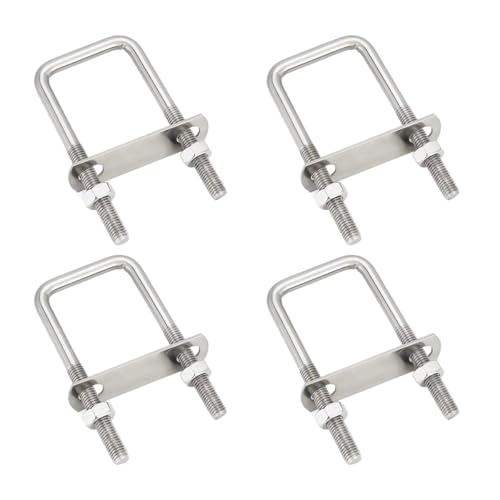 JinmoioyのUボルトセットは、304ステンレス鋼製で耐久性があります。サイズは50*80mmで、ナットとプレート付き。柱の固定やボートトレーラーに最適な固定金具です。