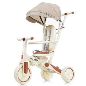 Emidor 子供用三輪車 折りたたみ式ベビーカー 押し棒付き ファッショナブルな自転車おもちゃ 乗用玩具 幼児向け 子供用自転車ギフトおもちゃ 1歳の誕生日お祝いギフト 折りたたみ式 フルキャノピー ホワイト (A)
