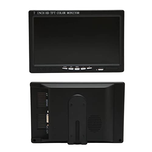 7インチTFT LCDモニター。車のバックミラーカメラ、DVD、衛星受信機対応。回転可能なスタンド、VGA・AVポート、DC 12V(米国プラグ)。