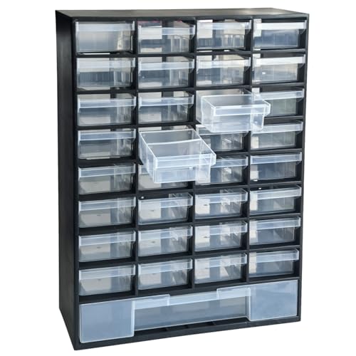 Socpuro パーツキャビネットは、33グリッドの引き出しを備えた大容量の収納ケースです。サイズは41*30*13cmで、卓上または壁掛け可能。プラスチック製で工具や小型部品の整理に最適です。