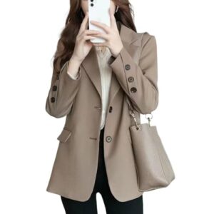 ブレザー スーツ レディース ジャケット 长袖 大きいサイズ ビジネス オフィス フォーマル 体型カバー 通勤 OL 春秋冬 (L, ブラウン)