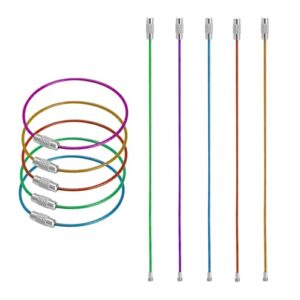ワイヤーキーチェーンケーブル、6インチコーティングステンレススチール荷物タグループ直径2mmメタルワイヤーケーブルキーリングループ、荷物キーIDキーパータグキーリング用、ホワイト