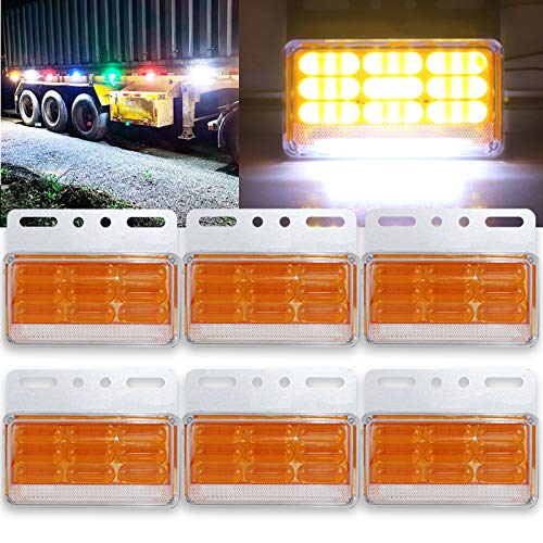 AUTOYUZU サイドマーカーランプは、路肩灯・車幅灯・ダウンライト機能を持ち、ウインカー機能付きのCOBチップ49連の角型防水ライトです。DC24V専用でトラック用の6個セット、取り付けに必要なネジやナットも付属しています。