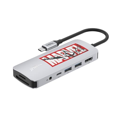 ディズニーマーベルのBelkin Connect USB-Cハブは、7つのポートを持ち、4K@60Hz HDMI出力、USB-A3.2ポート2つ、超高速データ転送に対応。SD/MicroSDカードスロット付きで、Windows/MacOS/iOSに対応。