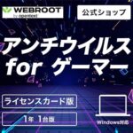 WEBROOT SecureAnywhere アンチウイルス for ゲーマーズは、ゲームプレイ中でも快適さを維持し、マルウェアやウイルスからPCを保護します。1年間1台のライセンスで提供されます。