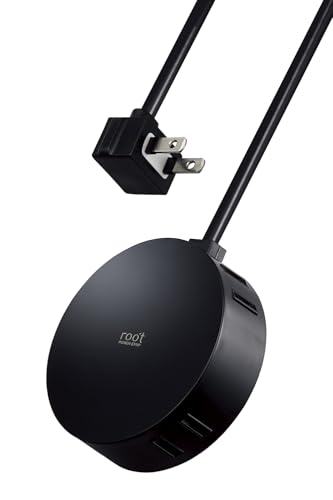 エレコムの電源タップ「roo’t(ルオット)」は、スタイリッシュな丸型デザインで、4個口、2.5mのブラックケーブルを備えています。見せるインテリアとしても最適で、コンパクトな設計で収納性も良好です。