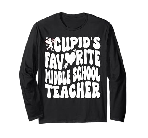 キューピッドのお気に入り、中学校教師・教育者バレンタイン向けの長袖Tシャツ。心温まるデザインで、生徒との絆を感じるアイテム。