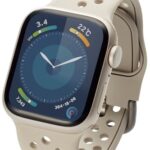 エレコムのApple Watch用バンドは、41mm/40mm/38mm対応の軽量シリコン製。通気穴付きで蒸れにくく、スポーツにも最適。モデルSE2、9、8、7、6、5、4、3、2、1に対応。カラーはスターライト。
