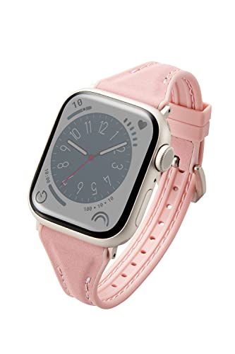 エレコムのアップルウォッチ用バンド、対応サイズは41mm、40mm、38mmでSE2やシリーズ8〜1に対応。素材は革レザーとTPU、カラーはダスティピンクでスリムデザインです。