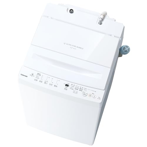 TOSHIBAの全自動洗濯機AW-7DH4(W)は、7kg洗濯容量でインバーター技術を搭載。自動槽洗い機能や、ウルトラファインバブル洗浄を採用し、低振動・低騒音を実現。抗菌水機能も備え、ボディ幅は51.5㎝です。
