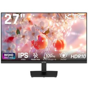 KEY TO COMBAT 27インチ モニターWQHD(2560×1440) 100Hz IPSパネル HDR10 Adaptive Sync sRGB116% 300cd/m²HDMI 2.0×2 DP 1.4×1 フリッカーフリー Softeware LBL 省エネ設計 目に優しい設計 VESA100mm×100mm ビジネス/取引/グラフィック/映画 3年保証 KTCモニターH27T27