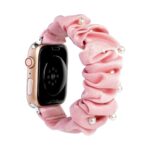 WOXDECOのシュシュ風コンパチブルApple Watchバンドは、ピンクのパール系デザインで、全シリーズ対応。柔軟でおしゃれなメンズ・レディース兼用交換ベルトです。