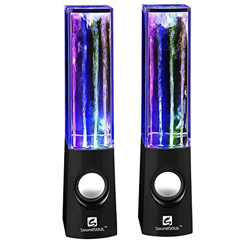 LEDスピーカー ダンシング ウォーター スピーカーは、音楽に合わせて踊る4色光と噴水効果を持つPCスピーカーです。ブラックカラーでスタイリッシュなデザインが特徴です。