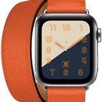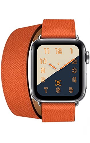 アップルウォッチ用の2重巻きレザーバンド。対応サイズは38mm、40mm、41mm、42mm、44mm、45mm。モデルはSE、9、8、7、6、5、4、3、2に対応。カラーはオレンジ。