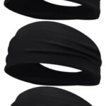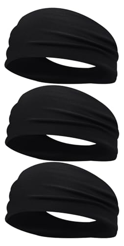 メンズヘアバンド。幅11cmの薄型デザインで、汗止め効果あり。吸汗速乾素材使用。ジョギングやスポーツに最適。男女兼用、3色セット。