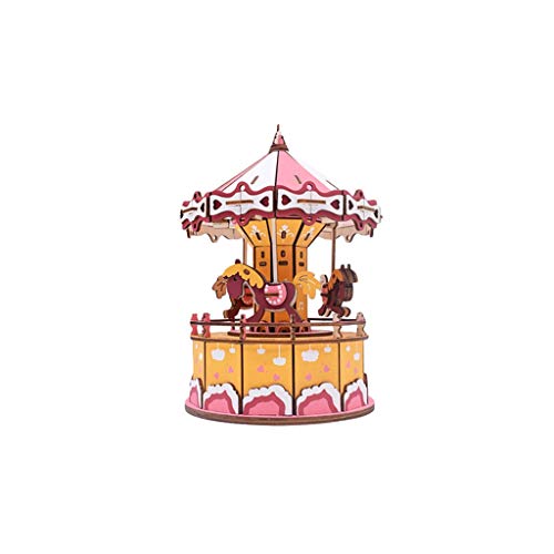 MHTCJのスカイ市木製パズルオルゴールは、手動で回すカルーセルデザイン。誕生日ギフトに最適で、組み立ても楽しめます。