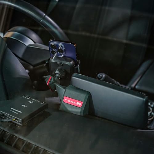 特許取得済みのAXIS PARTS製、マツダロードスター(ND)専用の7インチモニター用車載スマートフォンホルダー。プッシュボタンロック解除でスモークブラックデザイン。8.8インチモニターには対応不可。