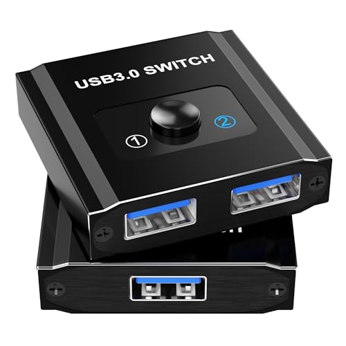 USB切替器は、PC2台用の双方向USB3.0対応で、5Gbpsの高速転送を実現。1台のプリンターやマウス、キーボードを切り替え使用可能。コンパクトで耐久性に優れたスイッチャーです。