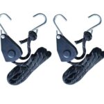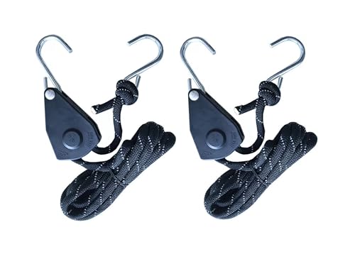 Ayizudaのロープラチェットは、直径10mmのナイロンコードで、長さ5m。耐荷重600kgで、多用途に対応。プーリー付きでワンタッチ調整可。S字フック2個、反射材入りで安全性を向上。