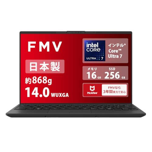 FMV 富士通 ノートパソコン Copilot+ AI Note U WU1-K1は、Windows 11搭載、14.0型ディスプレイ、Core Ultra 7プロセッサ、32GBメモリ、SSD 512GBを備えています。
