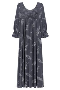 [ツーハッチ] ナイトブラ一体型ワンピース 長袖 マキシ丈 ノンワイヤー カップ付き 授乳 マタニティ 花柄 8816p 80L 花柄/チャコールグレー