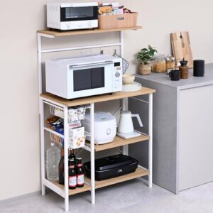 山善(YAMAZEN) レンジラック スライド棚 2口コンセント 高耐荷重キャスター付き 幅48×奥行42.5×高さ85cm 全体耐荷重40kg レンジ台 キッチンラック 組立品 オーク/サンドホワイト ALRW-41(OAK/SWH)
