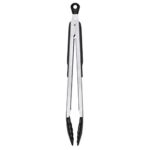 OXOのロック付き耐熱トング中サイズは、耐久性のあるスチール製で、熱に強いシリコン製先端を採用。ロック機能で収納が便利、食材をしっかりキャッチできるデザインが特徴です。