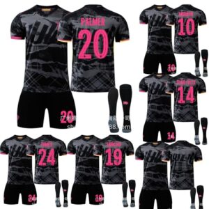 EESDCOS チェルシー 子供+大人 24/25 チャンピオンフォント版 アウェイ パーマー ムドリク サンチョ ジョアン・フェリックス トレーニング ユニフォーム サッカー 背番号9番 上下セット 通気性 ソックス付き 男子 記念シャツ ファンシャツ (子供 26,19番)
