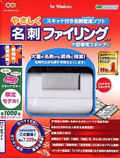 やさしく名刺ファイリング v.4.0 for Windowsは、小型専用スキャナ付きの限定モデルです。名刺を簡単にデジタル化し、管理がしやすいホワイトのデザインで、スムーズな操作が可能です。