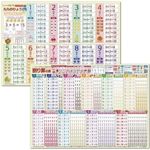 LearnEASY 2枚セット 九九の表・割り算の表 目で見てわかって英語も覚えられる お風呂用ポスター 音声QRコード 大きい A2サイズ 小学生 学習 算数ポスター B-MATH-5+7