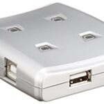 エレコム USB切替器 USS2-W4は、最大4台のUSB機器を手動で切替可能。USB 2.0対応でデータ転送速度は480Mbps。ロック機能付きで誤操作を防ぎ、安全に使用できます。