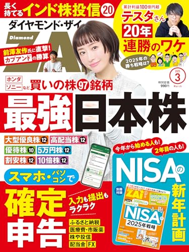 ダイヤモンドZAi 2025年3月号は、最新の投資情報や経済トレンドを特集した雑誌です。特集記事や株式市場の分析、資産運用のヒントが豊富に掲載されています。