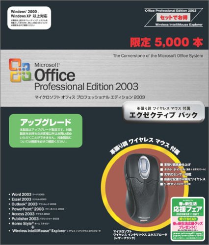 Microsoft Office Professional Edition 2003 アップグレード エグゼクティブパックは、Word、Excel、PowerPoint、Outlookなどを含む統合オフィススイートです。サポートは終了しています。